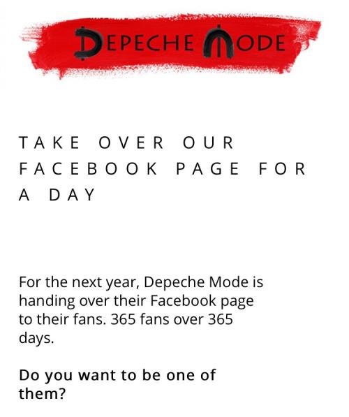 Съобщението гласи, че всеки почитател на Depeche Mode по света може да стане администратор на страницата им за един ден като изпраща снимки, фотоколажи или разкаже истории, свързани с бандата на адрес: http://takeover.depechemode.com. Групата ще избере стотици администратори, изпратили материали на посочения онлайн адрес или общо 365 администратора за 365 дни.